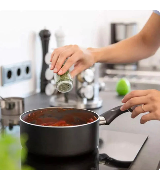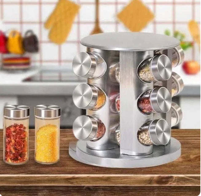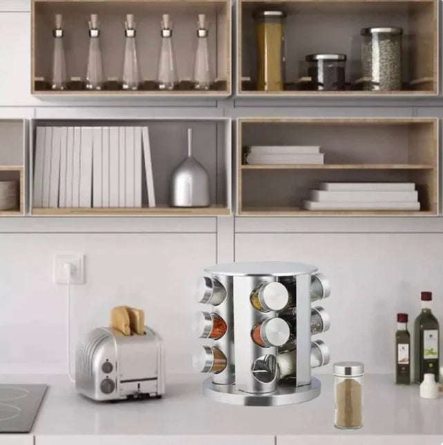 - Ahorra espacio en tu cocina con este útil Condimentero Giratorio que te ayudará a mantener tus especias frescas por más tiempo.