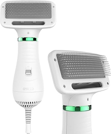 - 🟢 Elimina el Pelo Suelto y Enmarañado: Los enredos del pelaje de tu mascota ya no serán un problema, ya que permite desenredar mientras se seca al mismo tiempo.